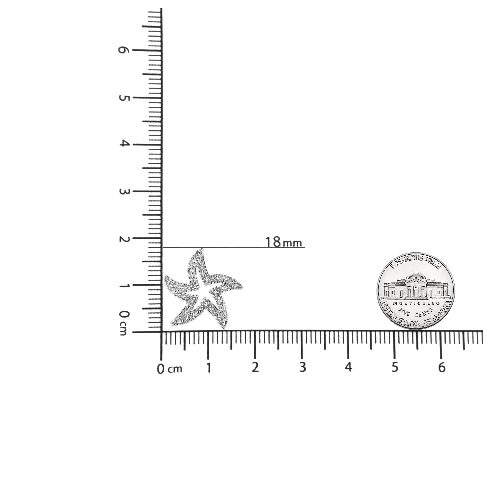 Entice her with starbursts of light-reflecting beauty of this gorgeous diamond star fish pendant crafted in sterling silver. This open design star fish is adorn with 12 prong set sparkling single cut diamonds. This dainty pendant hangs from a cable chain. Total diamond weight is 1/20 ctw.
