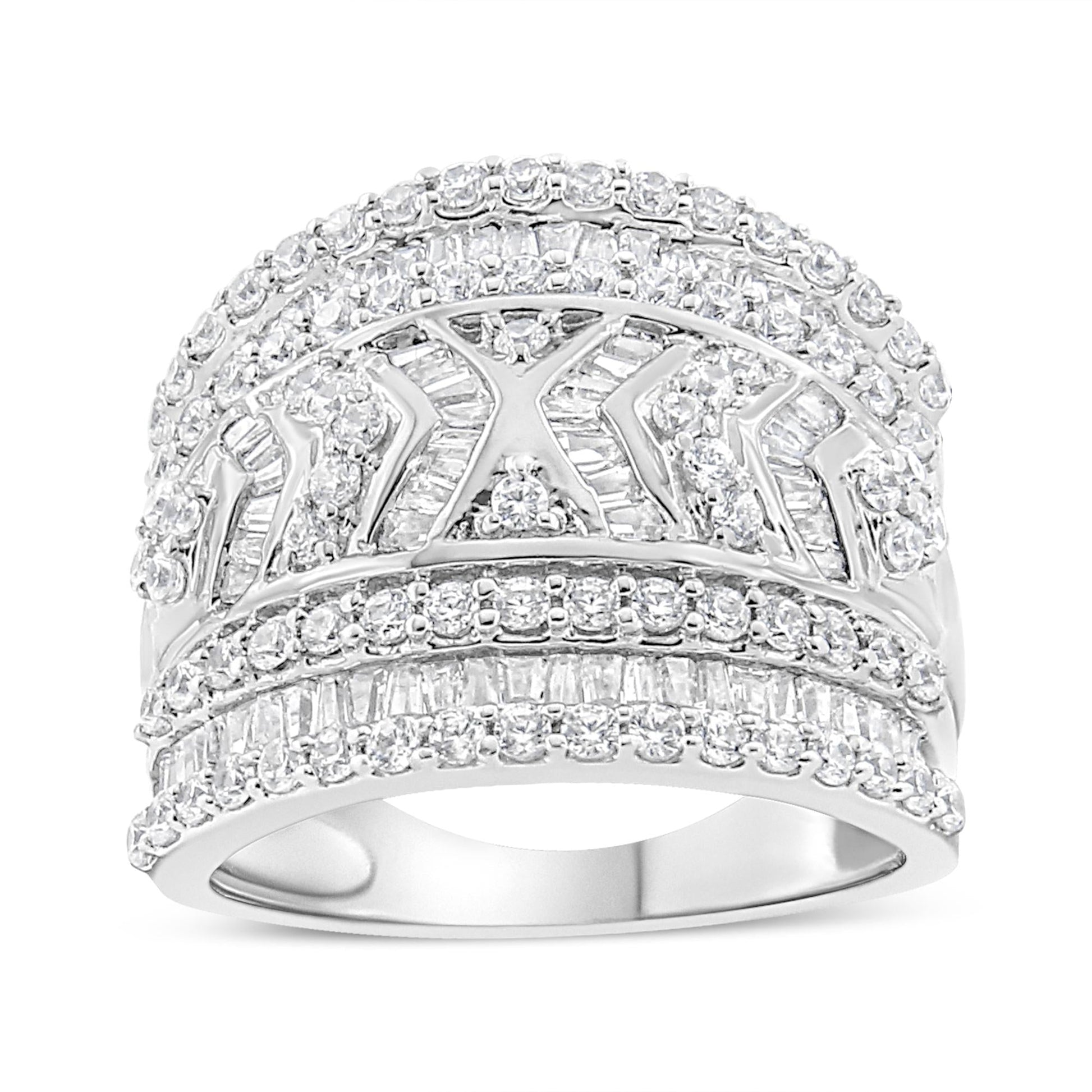 Introducing an exquisite masterpiece, crafted with passion and precision! This .925 Sterling Silver Multi-Row Ring Band is a true symbol of elegance and sophistication. Adorned with a dazzling array of 170 natural diamonds, totaling an impressive 2.0 cttw, this cocktail ring will captivate all who lay eyes upon it. The round and baguette diamond shapes, set in a combination of prong and channel settings, create a mesmerizing dance of light. With a J-K color and I3 clarity, this ring showcases the natural beauty of diamonds. Designed for the confident and glamorous woman, this ring is the perfect accessory to elevate any ensemble. Indulge in luxury and make a statement with this breathtaking diamond edge ring!